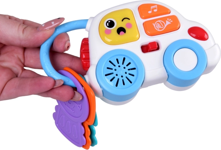 - Muzikiniai klavišai, krumpliaračiai, formų ir gyvūnėlių mygtukai, slankikliai, nuimamas automobilis su rakteliais