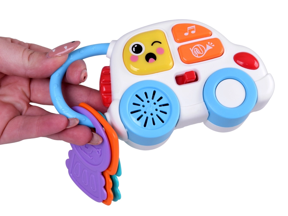 Mažasis automobilis su savo šviesomis ir garsais gali būti išimtas ir naudojamas atskirai. Tekstūruoti rakteliai patogūs mažoms rankytėms ir skatina suėmimą.