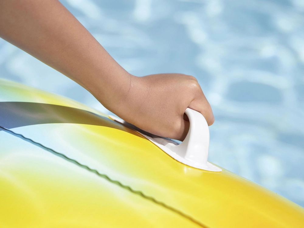 Du integruoti laikikliai palengvina užsėdimą, laikymąsi ir manevravimą vandenyje – vaikai jaučiasi tvirčiau ir saugiau.