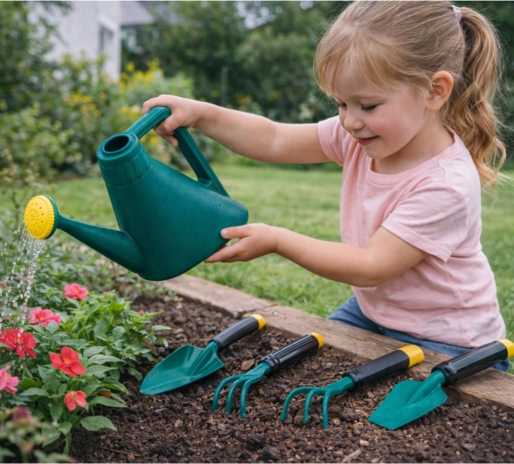 Praktiška nešiojama dėžutė viską laiko vienoje vietoje – vaikai gali pasiimti savo įrankius bet kur sode ir po žaidimo greitai susitvarkyti. Bendras sodininkavimas ugdo atsakomybę ir ryšį su gamta.