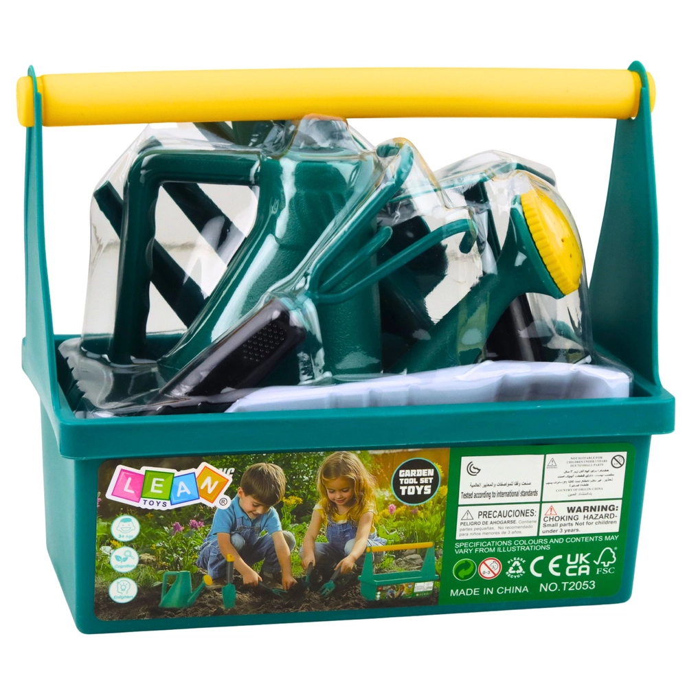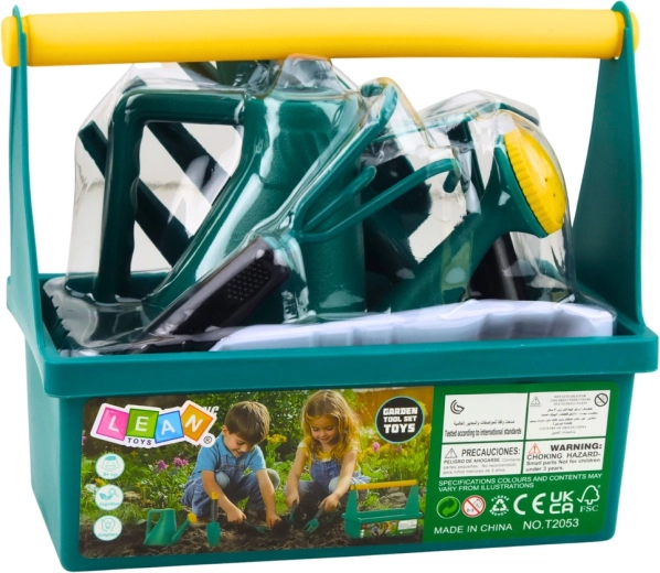 - Pilnas komplektas žaidimui sodininku: laistytuvas, kastuvėlis, grėbliukas, kultivatorius, kauptukas/šakutė, nešiojama dėžutė.
