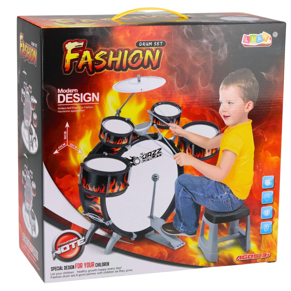 Ši spalvinga ir realistiška vaikiška būgnų sąsaja ištikimai atkuria tikrą būgnų rinkinį, todėl mažieji muzikantai gali pasijusti lyg scenoje. Grojimas būgnais skatina kūrybiškumą, vaizduotę bei smulkiąją ir stambiąją motoriką.