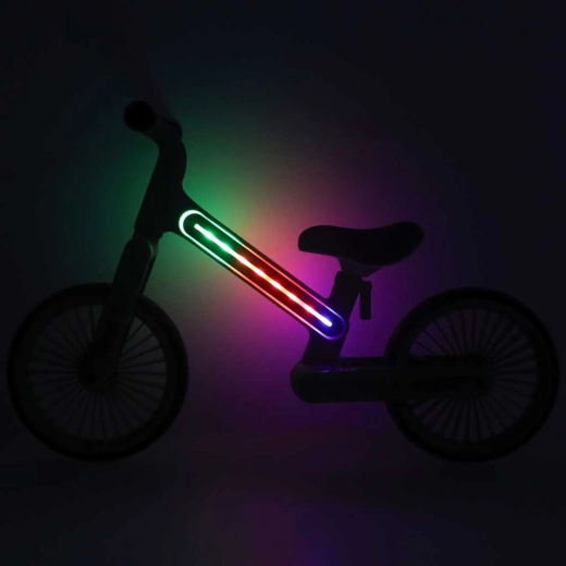 Į rėmą integruota LED juosta (RGB) didina saugumą esant prastam matomumui ir suteikia važiavimui įspūdingą išvaizdą. Valdymas mygtuku po rėmu.