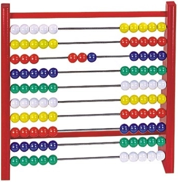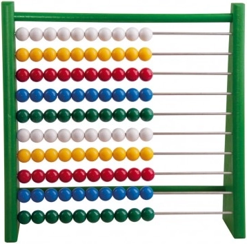 Skaitliuke yra spalvoti plastikiniai karoliukai, todėl matematikos mokymasis tampa vizualiai patrauklia patirtimi vaikams.