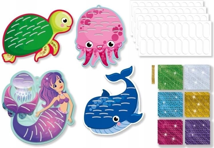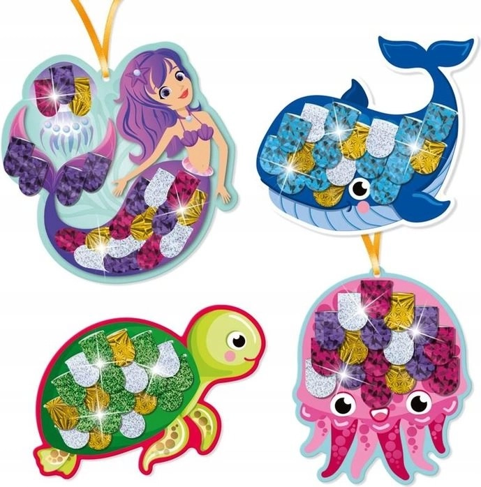 Kurkite kartu su vaikais spindinčius povandeninio pasaulio personažus – nuo banginio iki undinėlės. Dėl metalizuotų folijų atsiras ryškios dekoracijos ir paveikslėliai, kuriuos vaikai galės išdidžiai eksponuoti. Rinkinys idealiai tinka popietei, kupinai kūrybos ir įgūdžių lavinimo.
