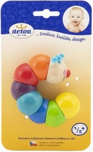 Šis mielas DETOA vikšras pagamintas iš kokybiškos medienos ir spalvotų karoliukų, suvertų ant elastingos gumelės. Spaudžiant ir lenkiant vikšras juda, tai vaikams smagu ir kartu natūraliai treniruoja jų suėmimą bei akies–rankenos koordinaciją.