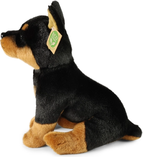 Mielas 30 cm dydžio pliušinis dobermanas iš išskirtinės RAPPA kolekcijos pradžiugins tiek mažus, tiek didelius gyvūnų mylėtojus. Dėl rankų darbo atrodo tarsi tikras, yra neįtikėtinai švelnus ir turi ekologišką užpildą iš perdirbtų medžiagų, saugų net patiems mažiausiems vaikams.