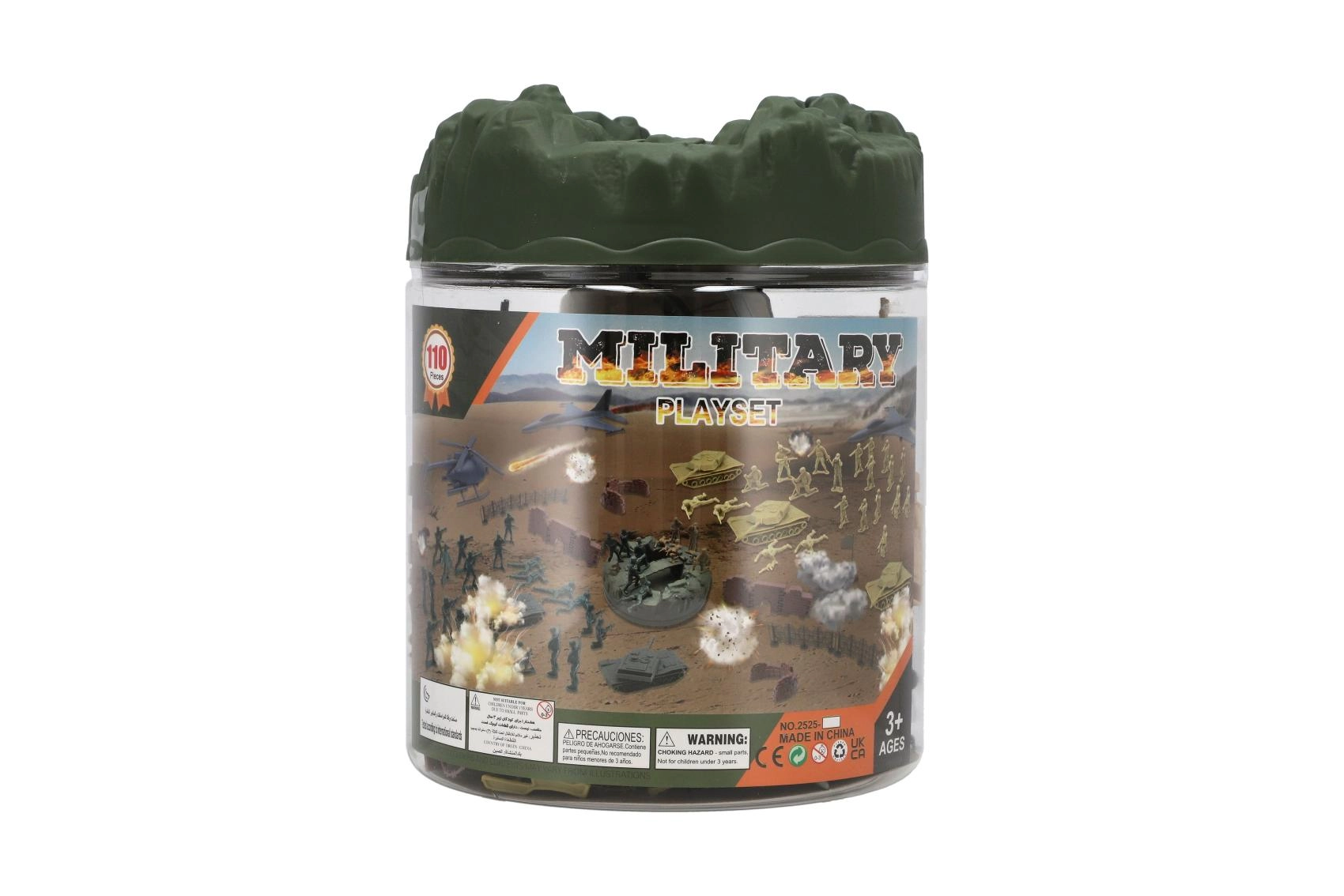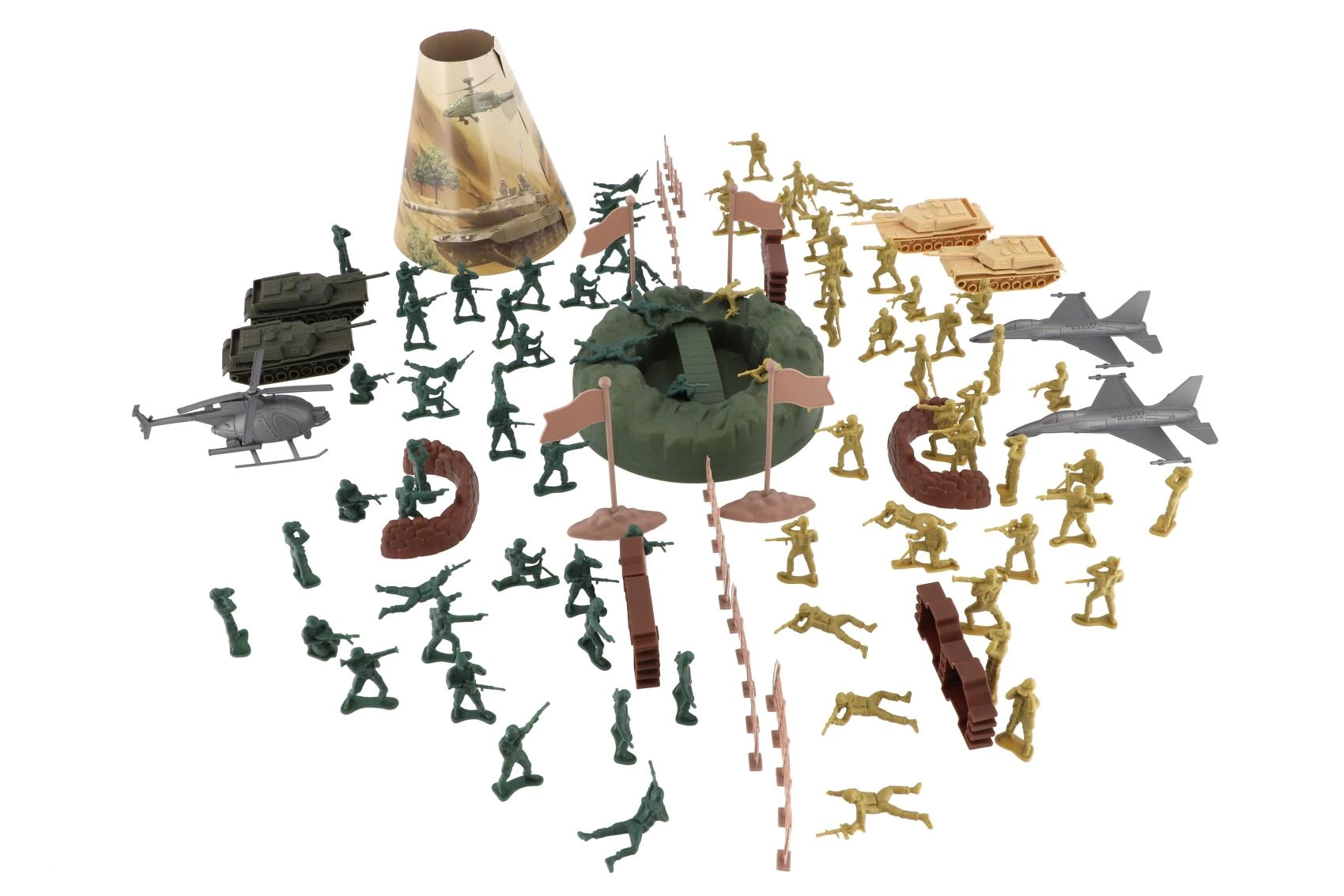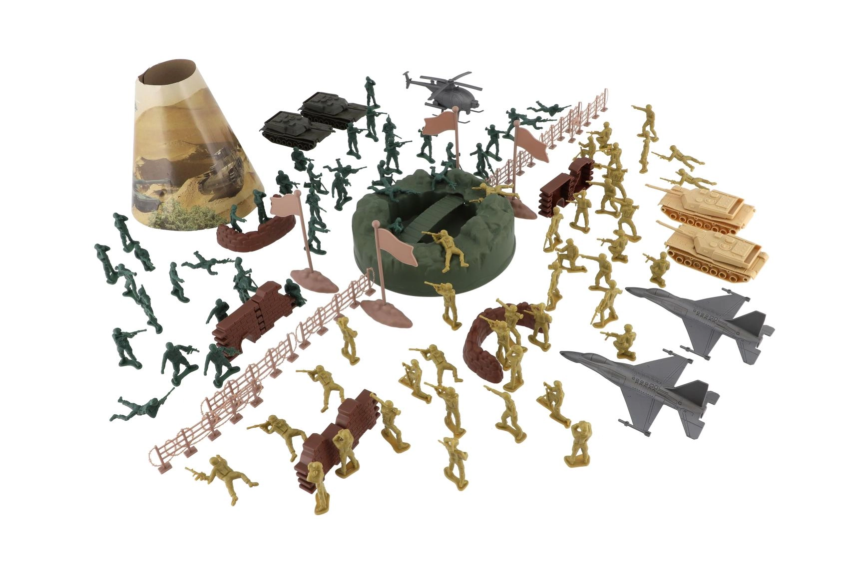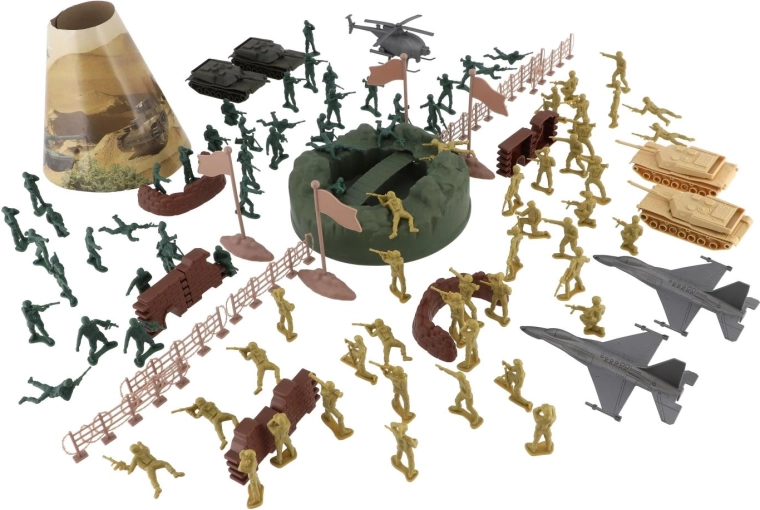 Išsamus karinis rinkinys siūlo viską, ko vaikams reikia kuriant įtemptas mūšio scenas. Jame rasite plastikinius kareivėlius įvairiose pozose, tankus, lėktuvus ir sraigtasparnius, taip pat tvoras, barikadas, vėliavas ir reljefo elementą. Dėl gausios komplektacijos lengva statyti bazes, planuoti veiksmus ir kurti strategiją.