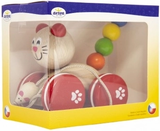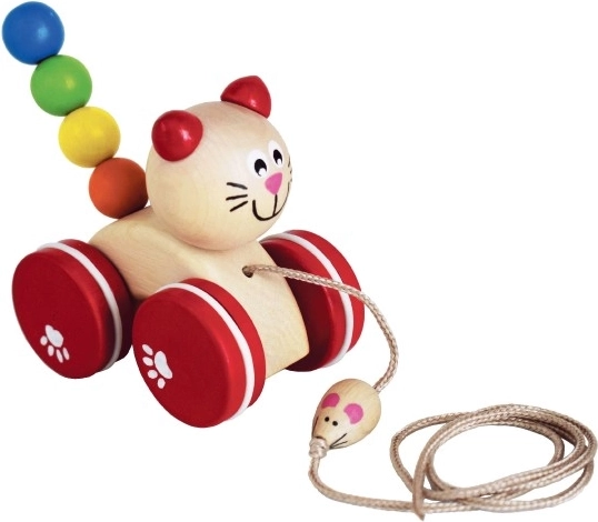 Ar jūsų vaikas pradeda žengti pirmuosius žingsnius? Padovanokite jam medinį tempiamą žaislą katės su pelyte formos – dar daugiau smagumo.