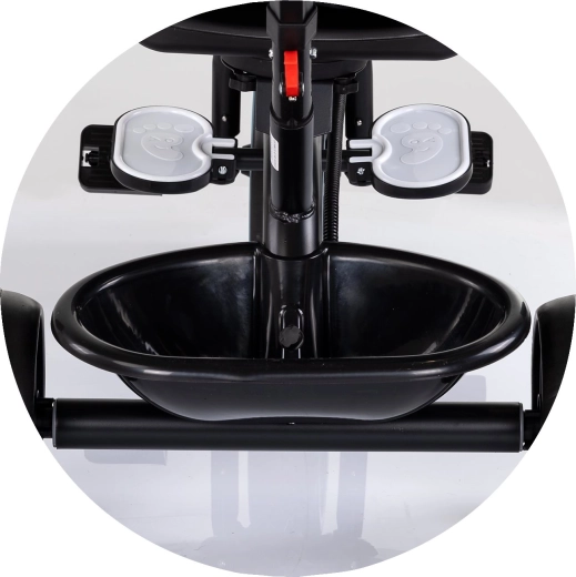 Aukščio reguliavimo rankena su dviem padėtimis leidžia patogiai valdyti kryptį ir visiškai kontroliuoti važiavimą asistuojamame režime.