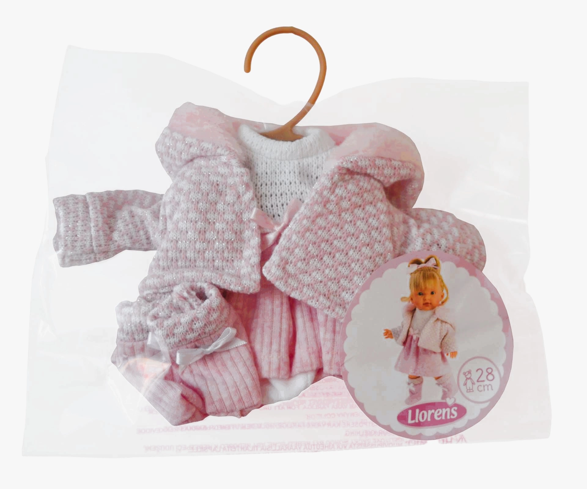 Praturtinkite savo lėlės garderobą kokybišku 4 dalių rinkiniu iš Llorens, skirtu 28 cm dydžio lėlėms. Rankų darbo gamyba Ispanijoje užtikrina kruopštų apdirbimą, malonias medžiagas ir ilgaamžiškumą – idealiai tinka kasdieniams žaidimams.