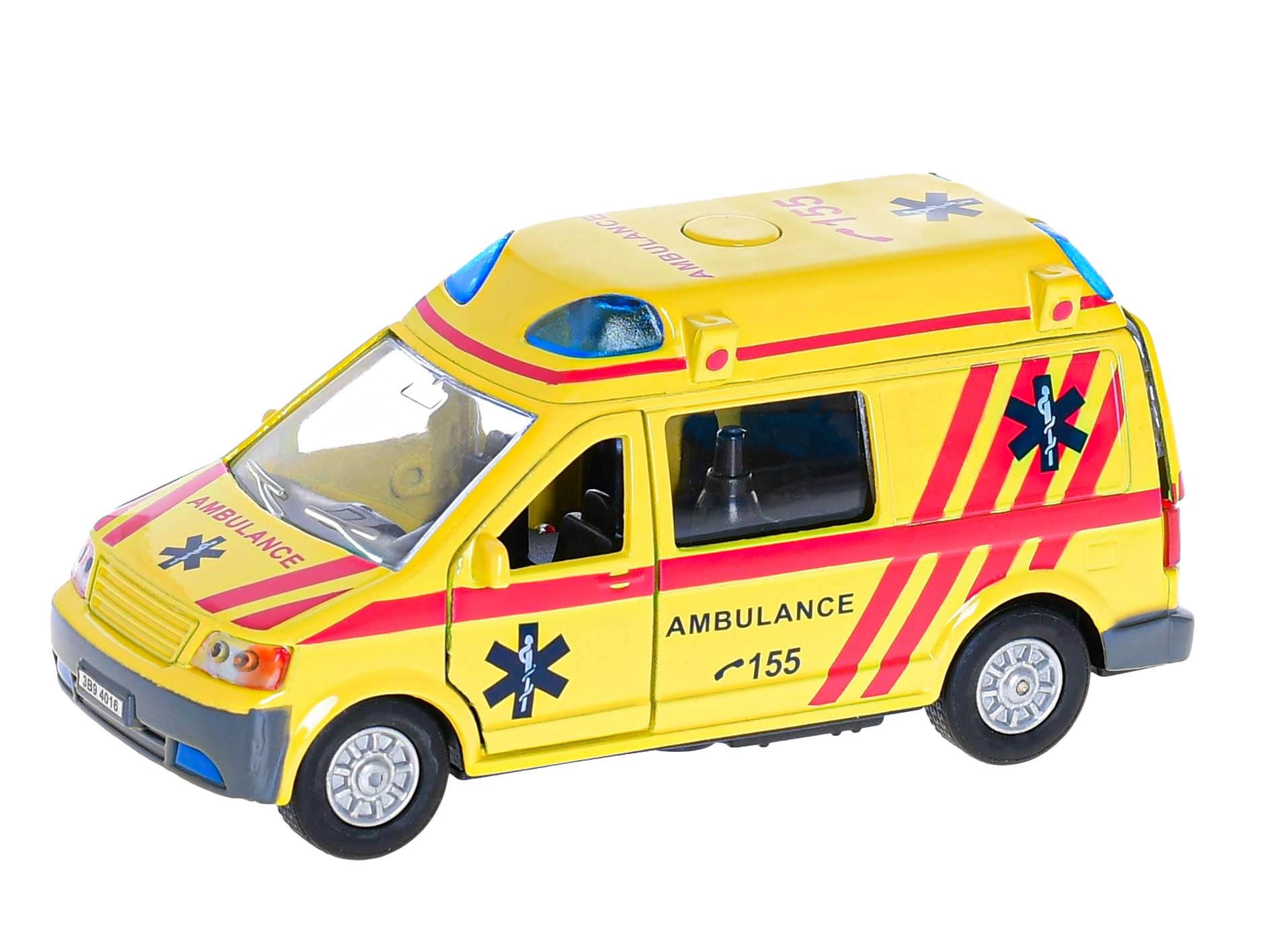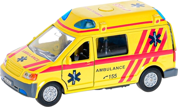 Realistiškas metalinis greitosios pagalbos automobilis mažiesiems gelbėtojams siūlo šviesos ir garso efektus, atbulinę eigą ir atidaromas priekines bei galines duris. 14 cm ilgis užtikrina puikų valdymą ir smagų žaidimą per kiekvieną gelbėjimo operaciją.
