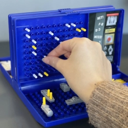 Sulankstomas lagaminėlio tipo skydelis užsiveria, todėl visi kaištukai ir laivai lieka kartu. Dėl kompaktiškų matmenų žaidimas telpa į kuprinę ar lagaminą ir puikiai tinka atostogoms, savaitgaliui ar kelionei traukiniu.