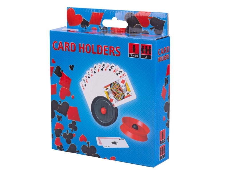 Mėgaukitės kortų žaidimais dar patogiau su praktiškais kortelių laikikliais. Patvarus plastikas ir kompaktiški 7 cm matmenys užtikrina lengvą suėmimą ir geresnę rankoje esančių kortų apžvalgą, ką ypač įvertins vaikai ir žaidėjai, turintys ribotą smulkiąją motoriką. Rinkinys supakuotas dėžutėje, todėl laikiklius paprasta laikyti ir be vargo pasiimti su savimi bet kur.