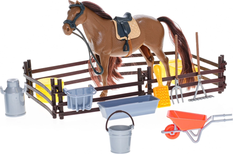Rinkinys skatina kūrybiškumą, vaidmenų žaidimus ir smulkiosios motorikos lavinimą. Dėka pridedamų priedų lengva kurti savo arklidžių ar ūkio scenas. Praktiška dėžutės pakuotė palengvina laikymą ir tvarkymą.