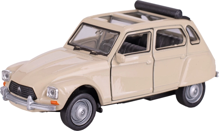 Išsamiai sukurtas legendinio automobilio CITROËN DYANE metalinis modelis iš Welly pradžiugins ir kolekcininkus, ir vaikus. Jis siūlo atbulinę pavarą smagiam važiavimui, patvarią metalinę konstrukciją su plastikinėmis detalėmis ir autentišką dizainą. Galimas trimis spalvomis – mėlyna, balta ir oranžine. Ideali dovana vaikams nuo 3 metų ir klasikinių automobilių mėgėjams.