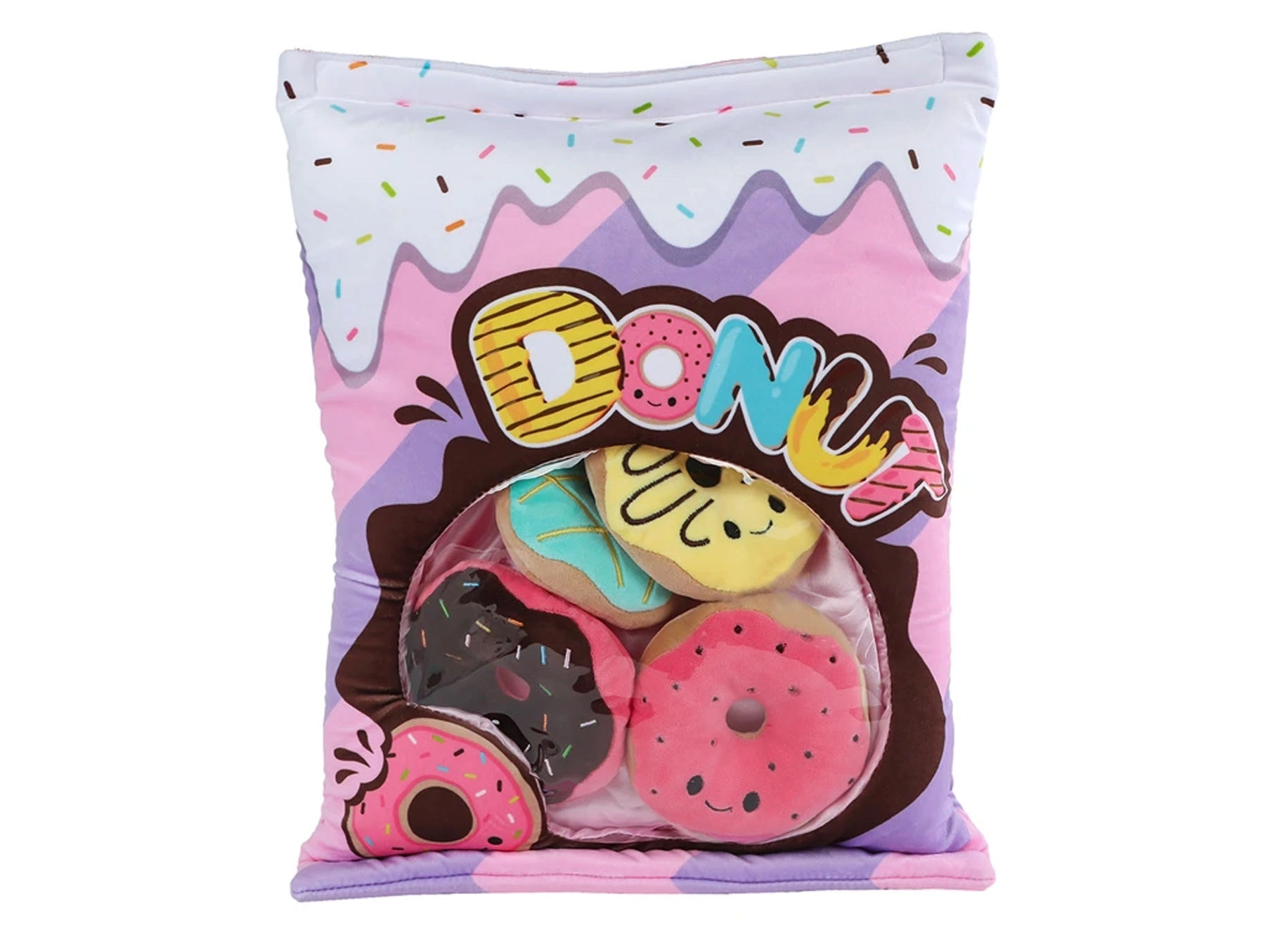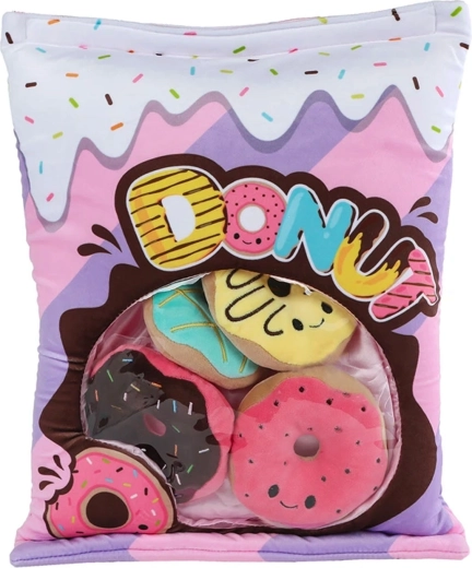 Minkštas pliušinis krepšys tarnauja ne tik kaip įpakavimas, bet ir kaip praktiškas organizatorius – vaikai mokosi tvarkingai sudėti žaislus, rūšiuoti ir palaikyti tvarką. Spurgų tekstūros ir formos lavina lytėjimo pojūtį, smulkiąją motoriką ir akių–rankų koordinaciją nuo ankstyvo amžiaus.