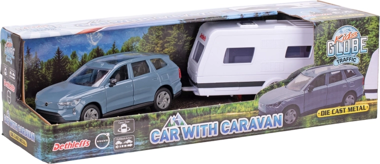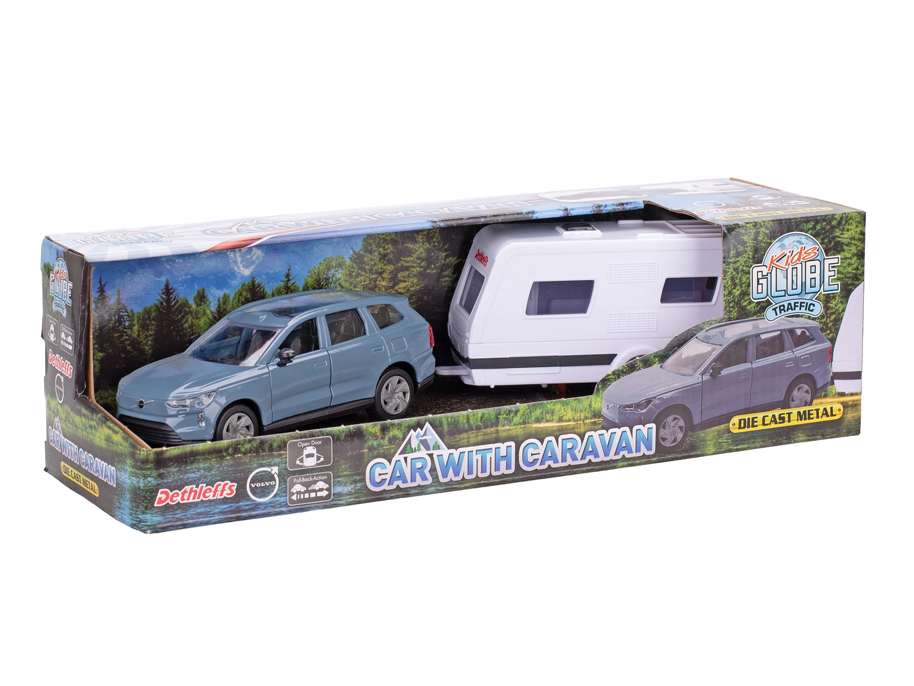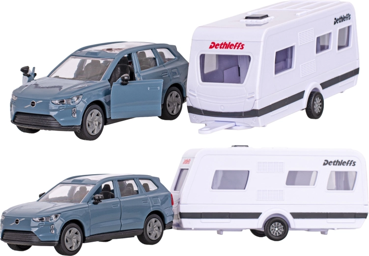 - Realistiškas atlikimas: ištikima tikro Volvo EX90 ir Dethleffs karavano imitacija.