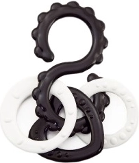 Aštuntukus patogu sugriebti, o jų patrauklus dizainas sudomina kiekvieną mažylį. Tinka nuo gimimo, o dėl smulkių detalių nebuvimo yra saugūs patiems mažiausiems.