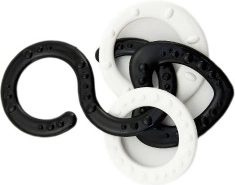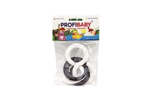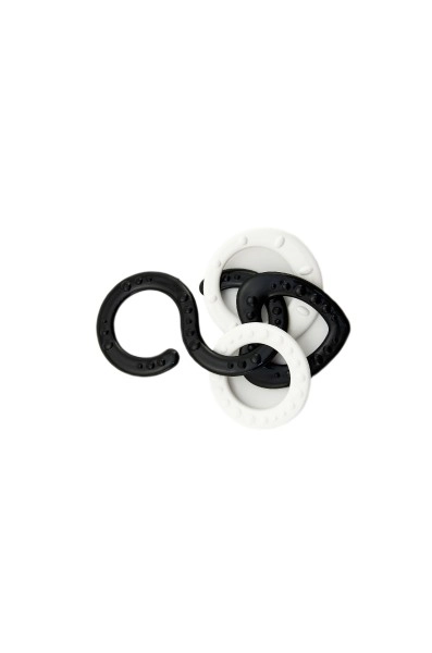 Aštuntukai su pakabukais juodai baltos spalvos, kurie puikiai stimuliuoja mažylių regą, yra idealiai tinkamas pasirinkimas ką tik gimusiems kūdikiams.