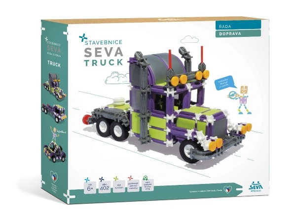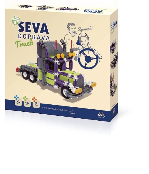 Konstruktorius SEVA Transportas Truck puikiai tinka vaikams, norintiems lavinti savo vaizduotę ir vikrumą. Šiame rinkinyje yra 402 detalės, todėl galima surinkti įvairių tipų mašinas, tokias kaip vilkikai, bagiai ir mažesni sunkvežimiai. Vaikai gali vaidinti sunkvežimio vairuotojus ir keliauti, kur tik panorėję.