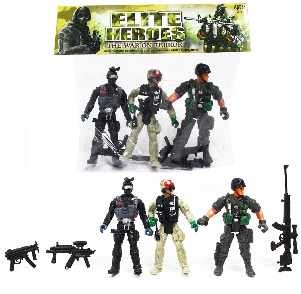 - 3 kareivių veiksmo figūrėlės su priedais