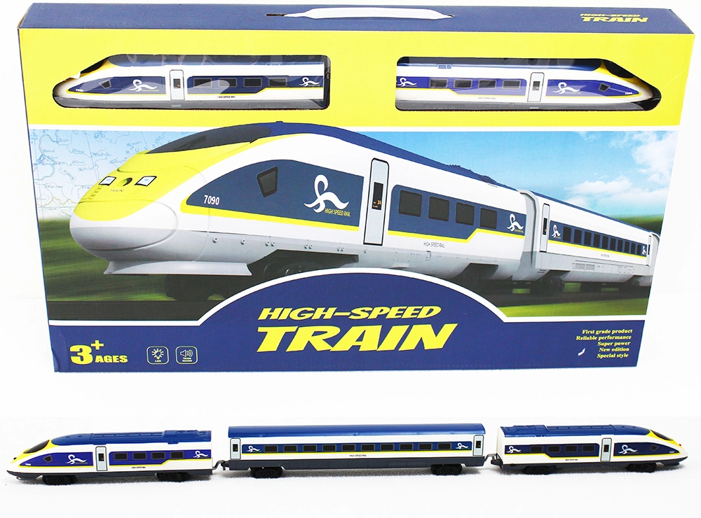 Elektrinė geležinkelio trasa suteikia realistišką greitaeigės geležinkelio patirtį mažiesiems traukinių mėgėjams. Rinkinyje yra 2 lokomotyvos (1x su baterijomis, 1x be pavaros), 2 vagonai ir 29 bėgių elementai įvairioms trasoms statyti. Paspaudus mygtuką įsijungia šviesos ir garso efektai, kurie sustiprina tikro važiavimo atmosferą.