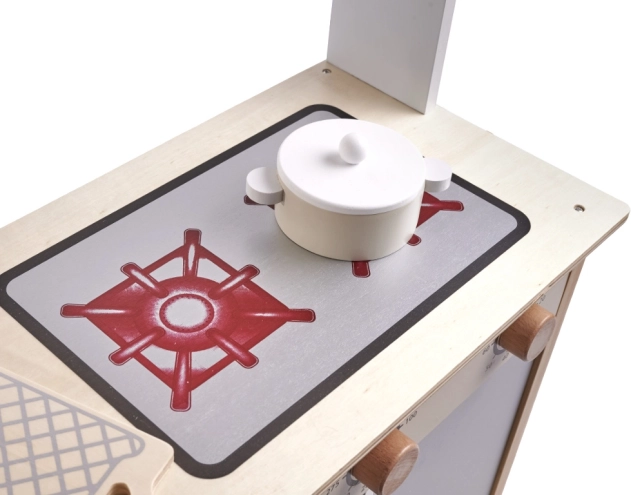 Realistiškas valdymas: Viryklės rankenėlės sukurtos taip, kad atrodytų kaip tikros, jas lengva sukioti, todėl vaikams patogu ir paprasta jomis naudotis.