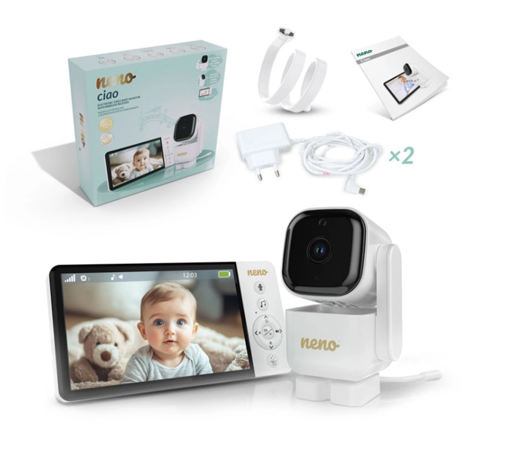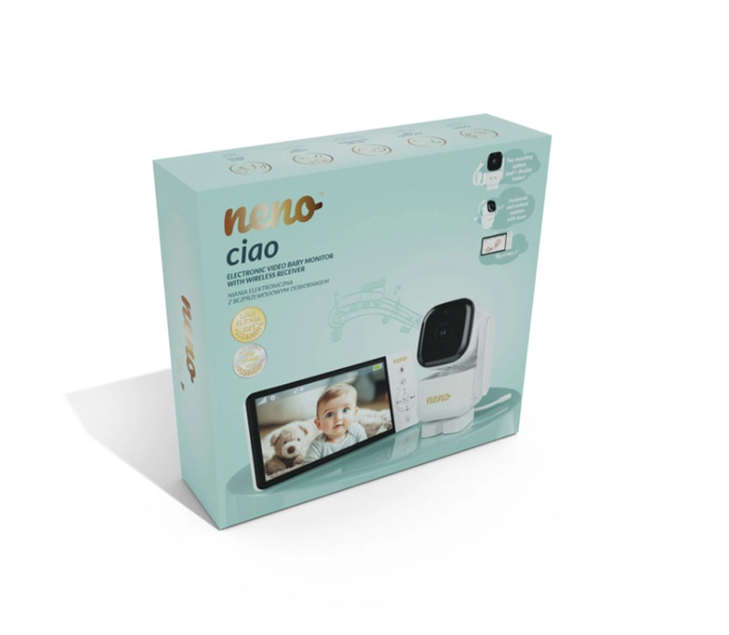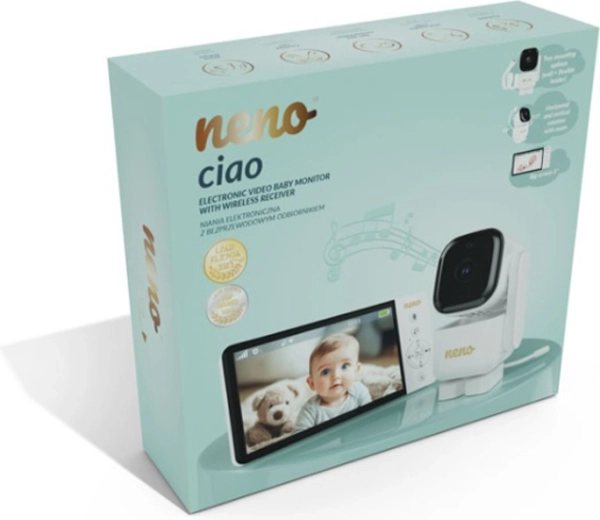 Išmani Neno Ciao vaizdo auklė suteiks ramybę dėl 5" spalvoto ekrano, pasukamos Pan & Tilt (355°/90°) kameros, naktinio matymo, dvipusio ryšio ir VOX technologijos energijos taupymui. Siųstuvas veikia iki 300 m atstumu, turi temperatūros jutiklį, 8 raminančias lopšines, o imtuvas su 5000 mAh integruota baterija veikia iki 12 valandų.