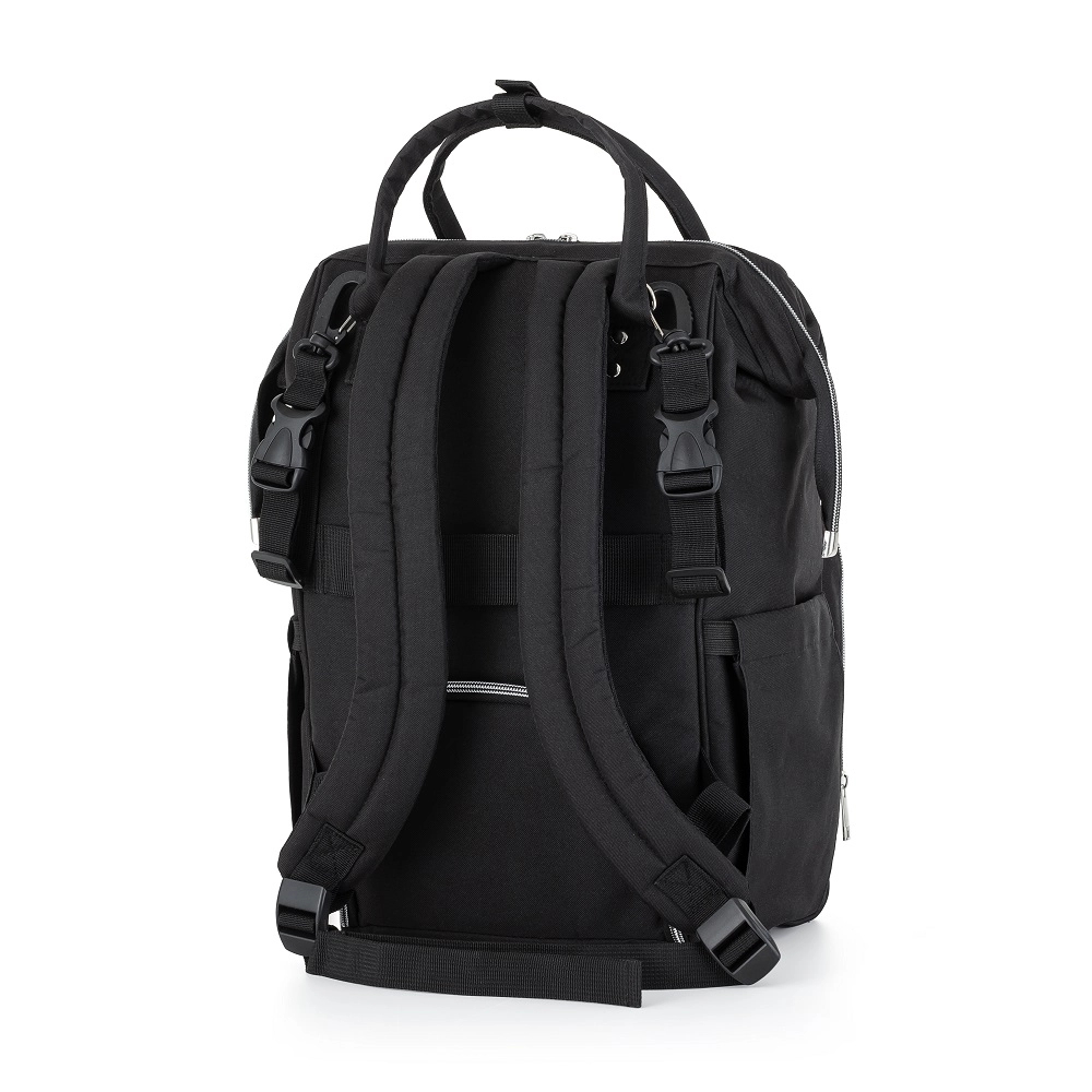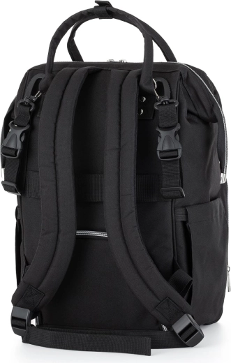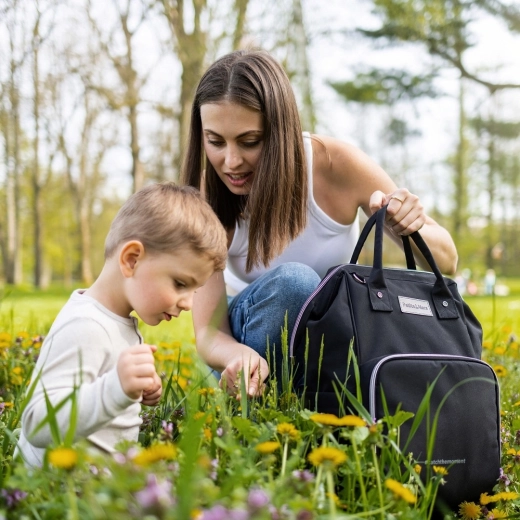 Mėgaukitės apgalvotomis detalėmis: dvi termo kišenės palaiko buteliukų temperatūrą, vandeniui atspari kišenė patikimai atskiria šlapius daiktus, raktų virvelė paspartina paiešką, o galinis užtrauktukas suteikia žaibišką prieigą prie pagrindinio skyriaus. Kuprinę lengvai pritvirtinsite prie vežimėlio arba lagamino rankenos, o dėl šviesaus pamušalo visada greitai rasite, ko reikia.