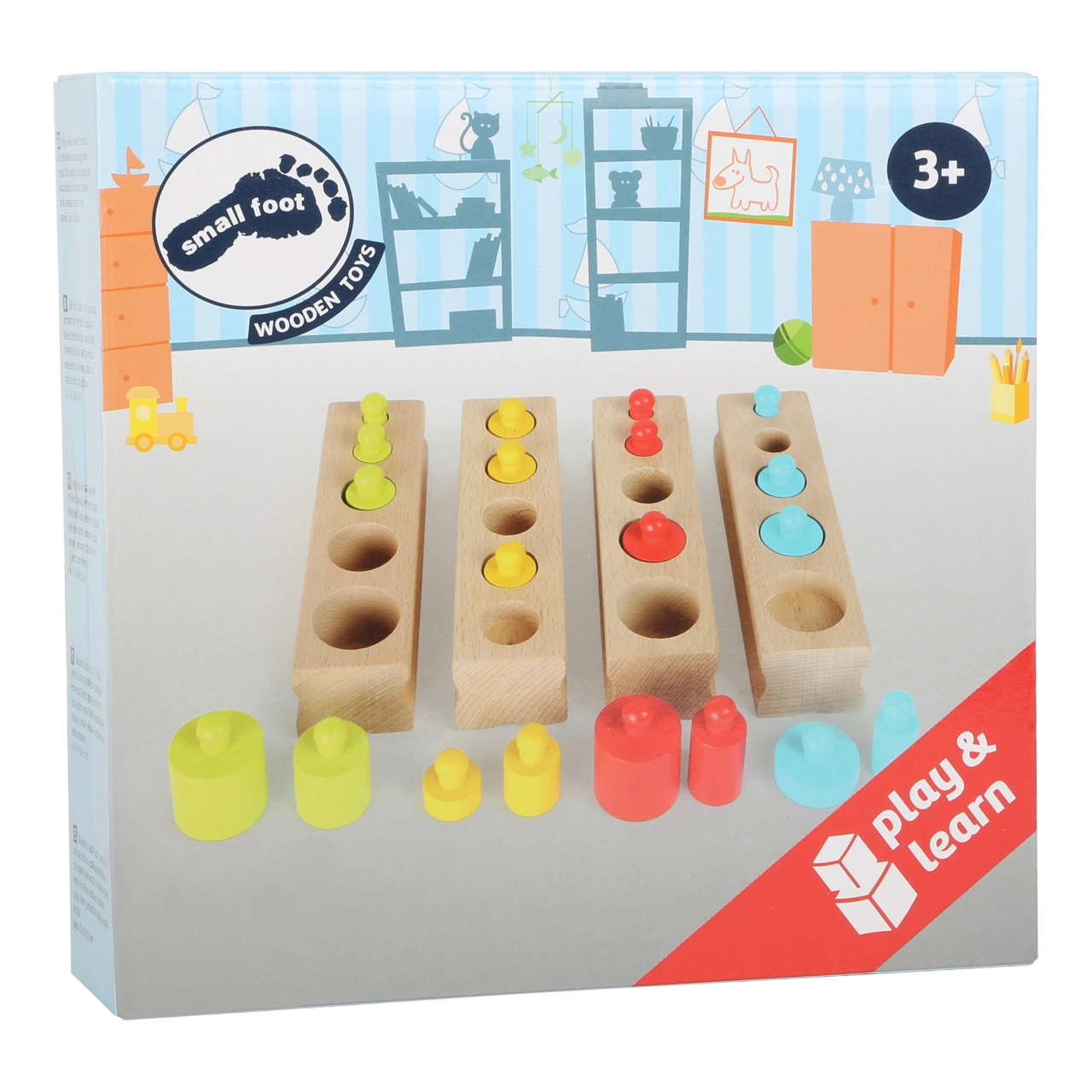 Kviečiame visus mažus tyrinėtojus lavinti savo įgūdžius su mediniu cilindrų galvosūkiu iš Small Foot. Šis žaislas pagamintas iš kokybiškos masyvios medienos ir siūlo paprastą, bet veiksmingą būdą skatinti vaikų intelektą ir asmenybės augimą.