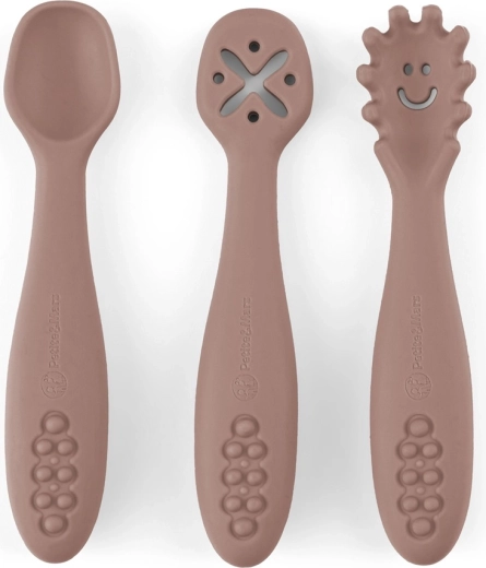 Treniruojamųjų šaukštelių rinkinys PETITE&MARS TAKE&MATCH padeda vaikams saugiai ir smagiai mokytis valgyti savarankiškai. Trys skirtingos formos skatina tyrinėti tekstūras ir skonius, lavina motoriką ir jutiminį suvokimą. Smulkios angos kai kuriuose šaukšteliuose leidžia kontroliuojamai tiekti maistą, kad vaikas neprarytų per didelių kąsnių.