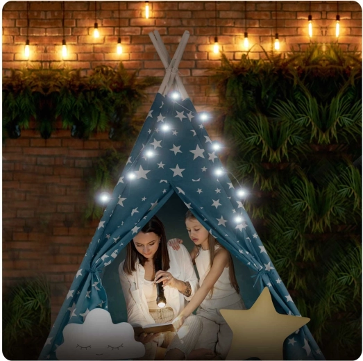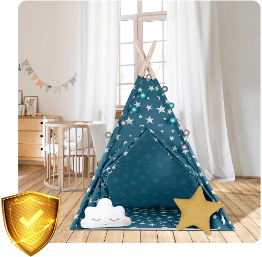 Kvėpuojanti 100% premium medvilnė (175 g/m²) užtikrina oro cirkuliaciją ir atlaiko net pačius nutrūktgalviškiausius nuotykius. Storos pušinės lazdos laiko konstrukciją tvirtą, o visą vigvamą galima greitai sulankstyti ir pernešti – į svetainę, vaikų kambarį ar į sodo pavėsį.