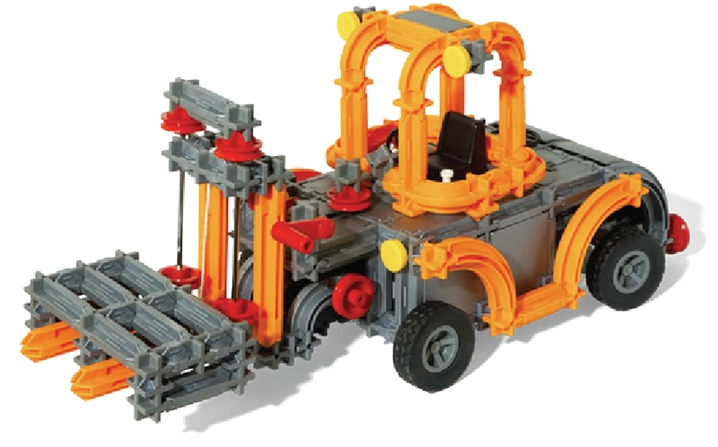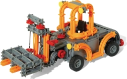 Sukonstruokite mėgstamą šakinį krautuvą. Šakės lengvai pakelia „padėklą“, strėlę galima pasukti, o naudojant rankenėlę su virvele (nėra rinkinyje) galima imituoti krovinio leidimą ir kėlimą.