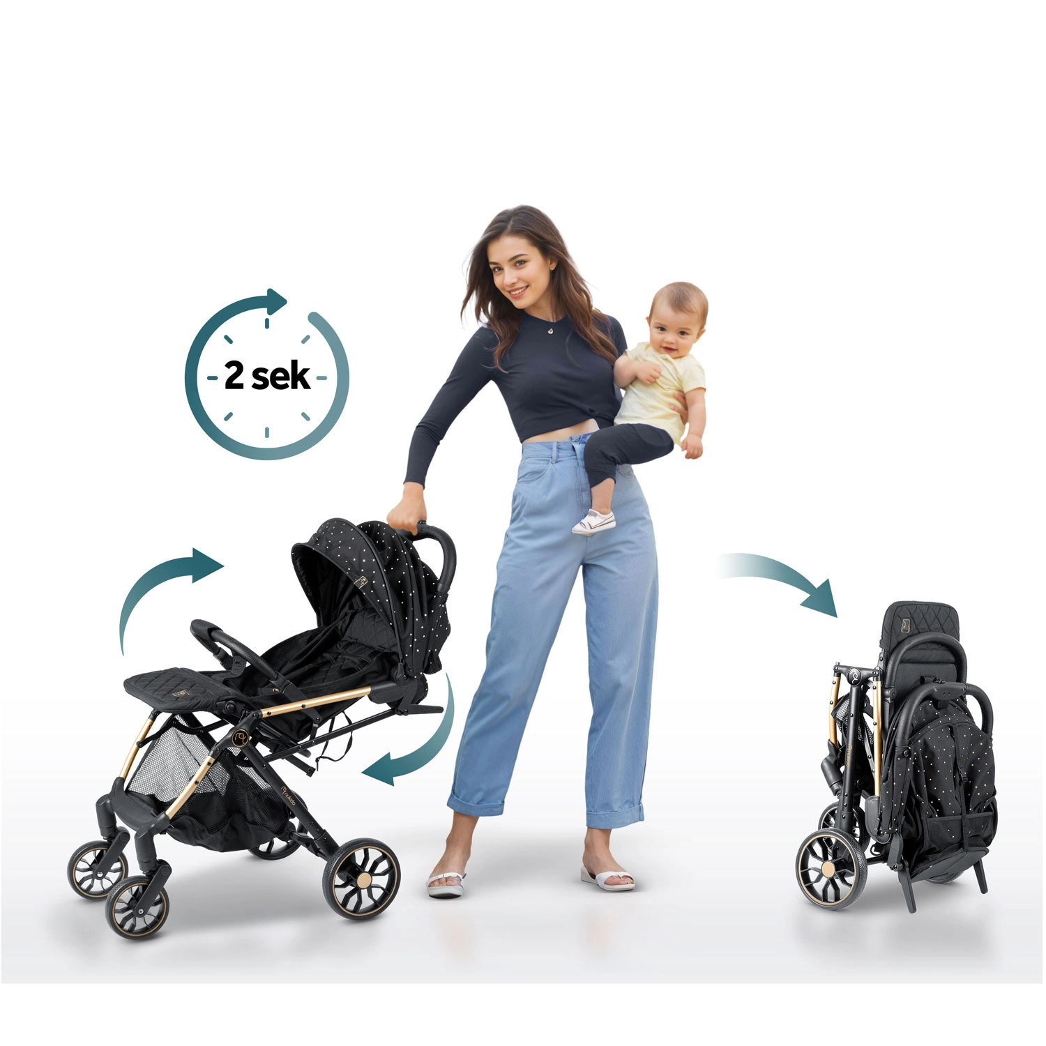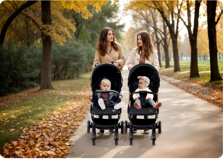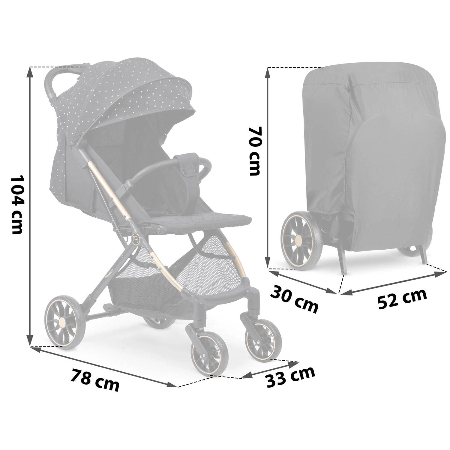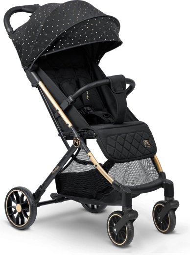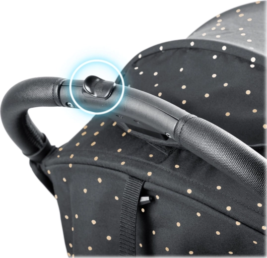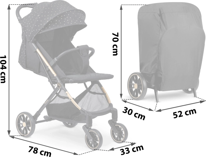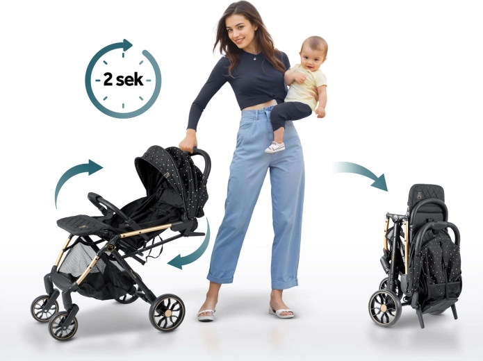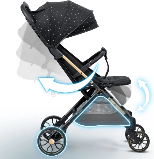 Maksimaliam vaiko komfortui – sklandžiai reguliuojama nugarėlė iki gulimos padėties, reguliuojamas kojų atlošas su patvaria PU danga ir išplečiamas stogelis su apsauga nuo saulės, vėjo ir lengvo lietaus. Žinoma, yra paminkštinti penkių taškų diržai, nuimamas buomelis ir erdvus krepšys visiems kelionėje reikalingiems daiktams.
