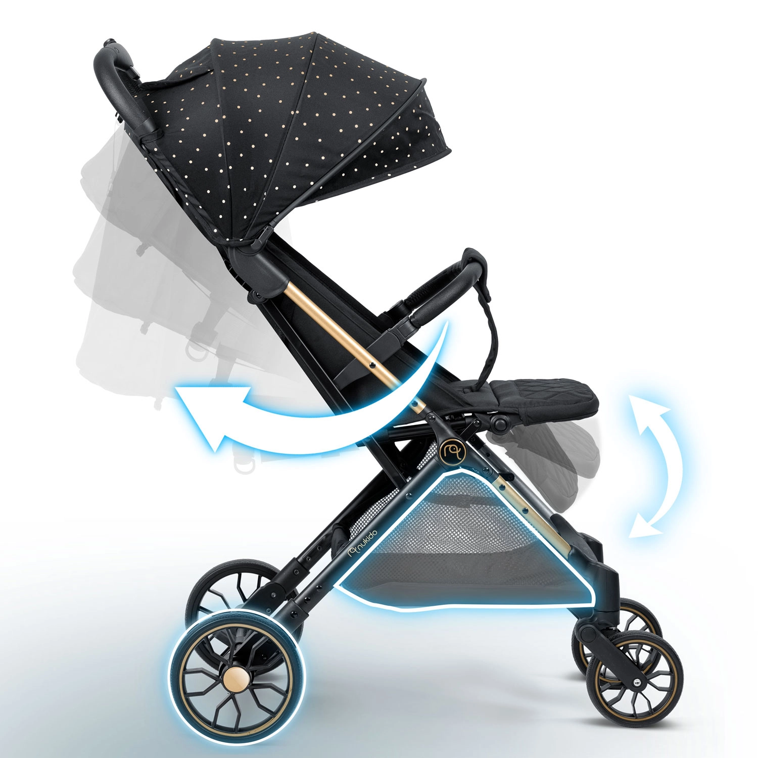 Nukido Paseo sujungia sumanų dizainą, saugumą ir lengvą valdymą tiek miestui, tiek parkui. Lengva ir tvirta konstrukcija, amortizuoti pasukami priekiniai ratai ir didesni galiniai ratai garantuoja tolygų riedėjimą per nelygumus. Greitas sulankstymas viena ranka ir kompaktiški matmenys sulanksčius palengvina nešimą ir keliones – įskaitant skrydžius lėktuvu.