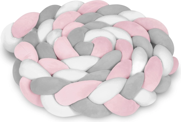 Minkštas ir antialerginis nertas lovytės mantinėlis modernioje rožinės–pilkos derinio spalvoje užtikrina saugumą nuo pirmųjų dienų, apsaugo nuo smūgių į groteles ir skersvėjo, o kartu sukurta jaukumą vaikų kambaryje. Dėl 3 m ilgio ir maždaug 11,5 cm aukščio lengvai prisitaiko prie lovytės ar žaidimų kampelio, yra malonus liesti ir lengvai prižiūrimas (skalbimas 30 °C).
