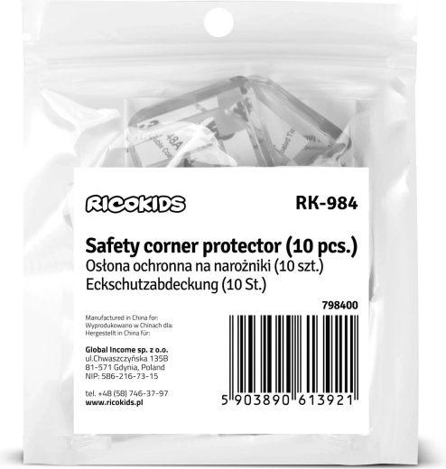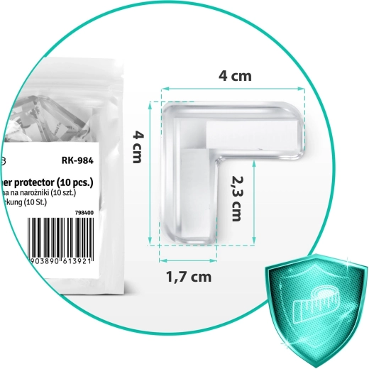 Apsaugokite vaikus ir baldus su permatomomis RICOKIDS kampų apsaugomis. Šie nepastebimi L profiliai iš patvarios medžiagos lengvai klijuojami ir suteikia patikimą aštrių briaunų apsaugą. Dėl stiprios dvipusės 3M juostos tvirtai laikosi, nepažeidžia paviršiaus ir dėl UV apsaugos negeltonuoja. Idealu stalams, spintelėms ir komodoms – greitas montavimas be įrankių ir švarus, estetiškas vaizdas.