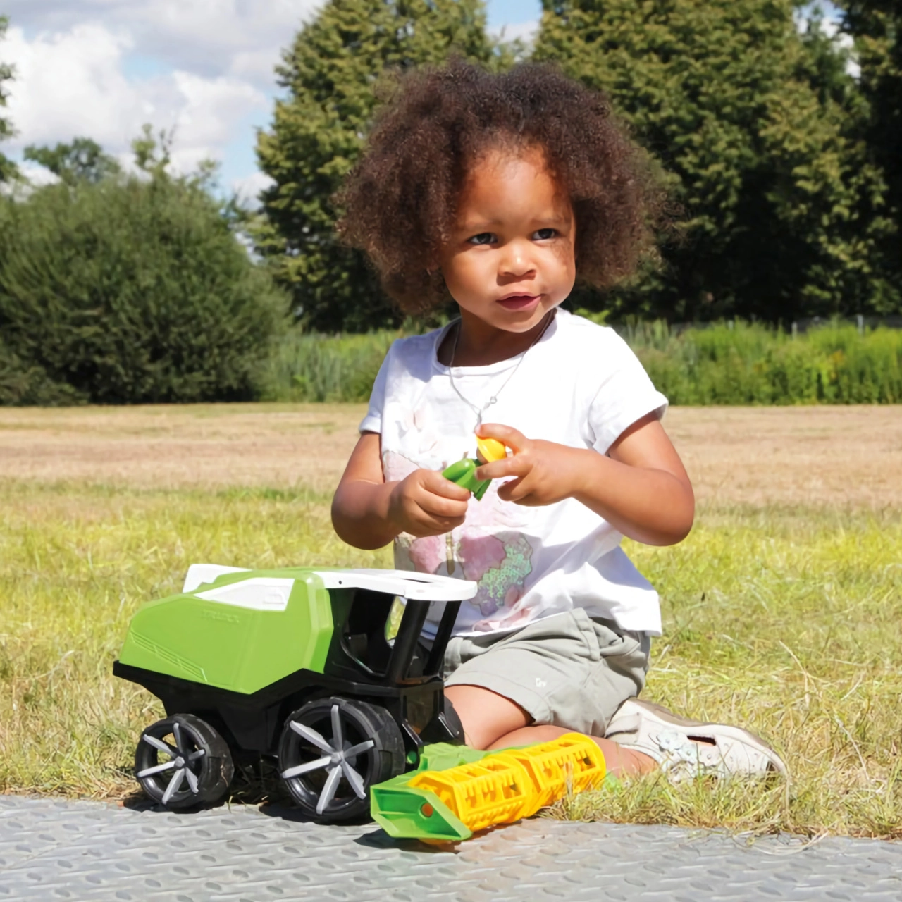Priekinė pjaunamoji ir kiti elementai juda, tad vaikai gali mėgdžioti derliaus nuėmimą bei lavinti motoriką ir vaizduotę.