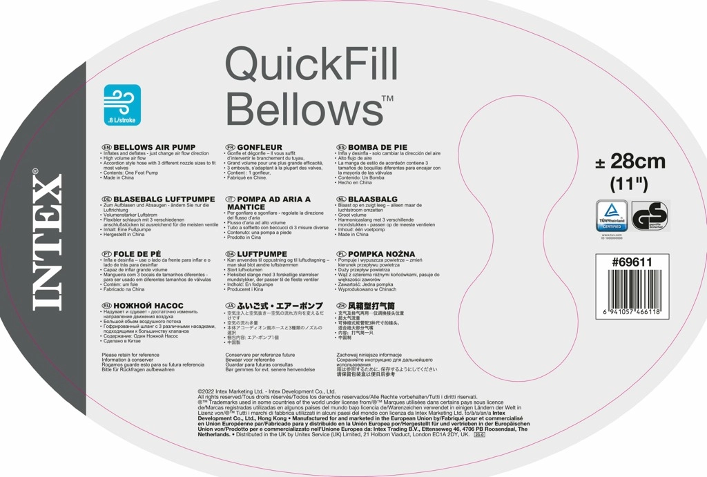 Kojinė pompa INTEX – patikimas pagalbininkas namuose ir kelionėse. Dėl dvipusės eigos ji gali pripūsti ir išleisti orą, tai daro net iki 3,5 karto greičiau nei bazinis modelis Double Quick I. Neslystantis griovelėtas pedalas suteikia užtikrintumo ir patogumo naudojant.