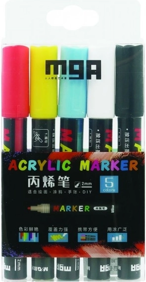 Akriliniai žymekliai idealiai tinka įvairių paviršių dekoravimui. Šie flomasteriai šviečia tamsoje ir tinka naudoti ant keramikos, stiklo, akmenų ir kitų medžiagų. Išdžiūvę tampa atsparūs vandeniui ir greitai džiūsta.