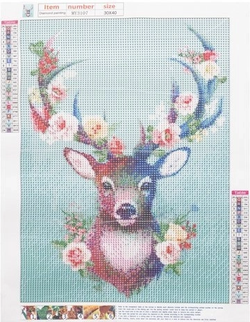 Sukurkite savo žėrintį paveikslą su didingo elnio motyvu. Drobė su detaliu atspaudu ir lipniu sluoksniu ves jus žingsnis po žingsnio pagal simbolius ir skaičius. Rinkinys tinka pradedantiesiems ir pažengusiems, siūlo valandas raminančios kūrybos.