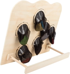 Atraskite begalinį smagumą su mediniu metimo žaidimu Afrika – puikus pasirinkimas vaikams nuo 3 metų. Žaidimas ne tik gerina akių-rankų koordinaciją, bet ir skatina motorinius įgūdžius, kai vaikai stengiasi pataikyti į skirtingo dydžio angas spalvotais maišeliais.