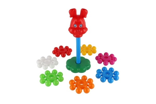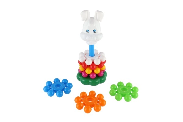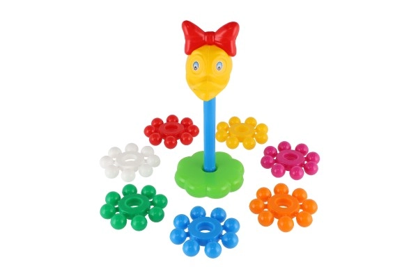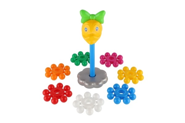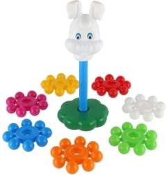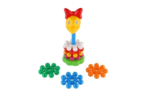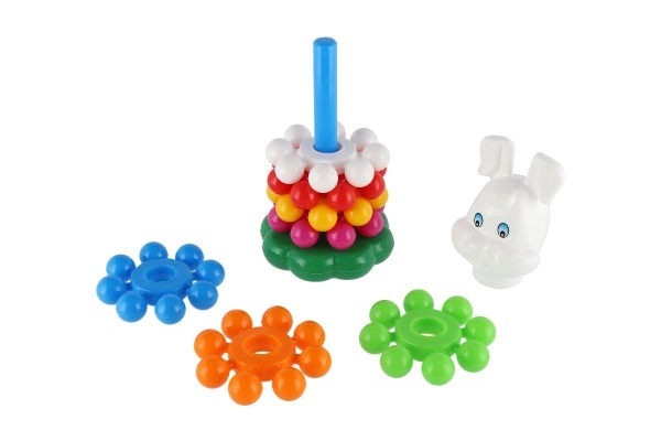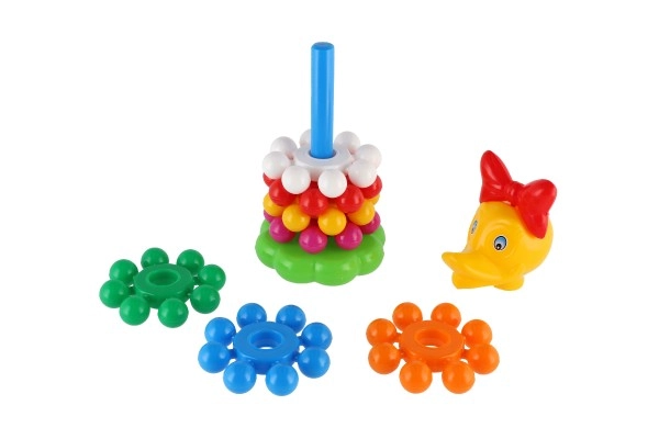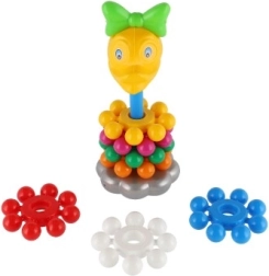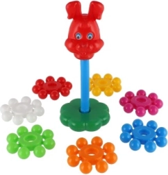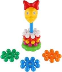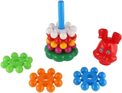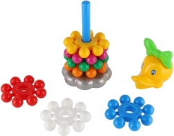 Platus, spalvingas žiedas patogiai laikomas ir lengvai veriama ant centrinio strypo. Žaidimas lavina judesių tikslumą ir treniruoja akių–rankų koordinaciją nuo pirmųjų bandymų.