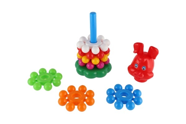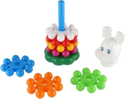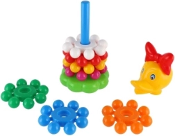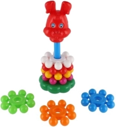 Ši žaisminga plastikinė piramidė su žiedais – idealiausias pirmasis didaktinis žaislas patiems mažiausiems. Vaikai lengvai sugriebia žiedus ir veria juos ant strypo, taip natūraliai lavindami smulkiąją motoriką, koordinacinius įgūdžius ir gebėjimą skirti spalvas bei dydžius. Dėl 26 cm aukščio bokštelis yra stabilus, gerai matomas ir vilioja kartoti veiklą.