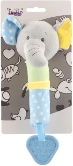 Praturtinkite savo vaiko žaidimų akimirkas šiuo žavingu žaislu! Pliušinis dramblys su cypleliu suteikia garsinę stimulaciją, kuri sudomina ir pralinksmina. Žaislo kramtukas padeda lavinti jutiminius įgūdžius ir užtikrina palengvėjimą dygstant dantukams. Išskirtinai švelni ir minkšta medžiaga yra saugi patiems mažiausiems.