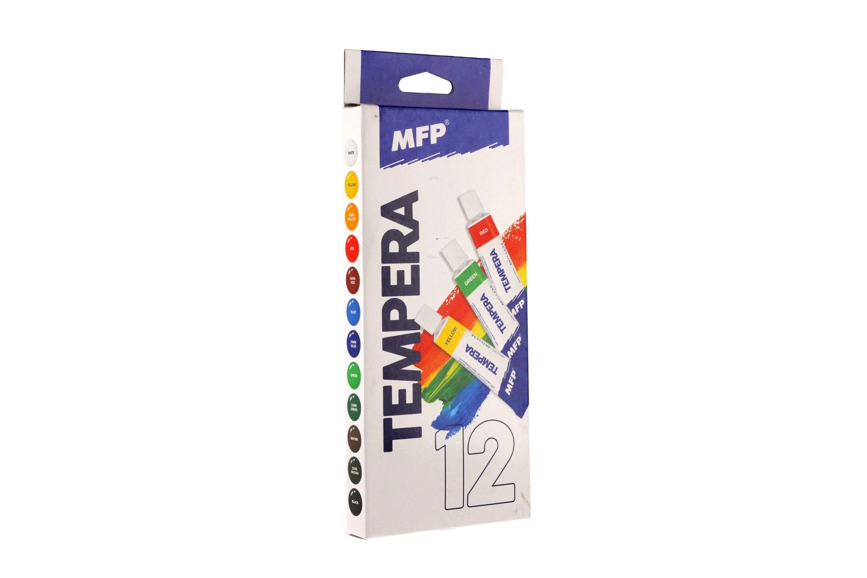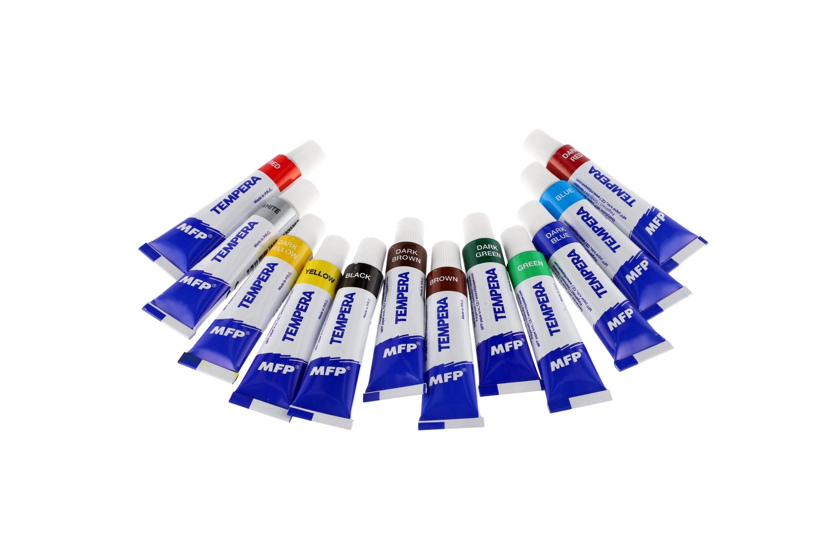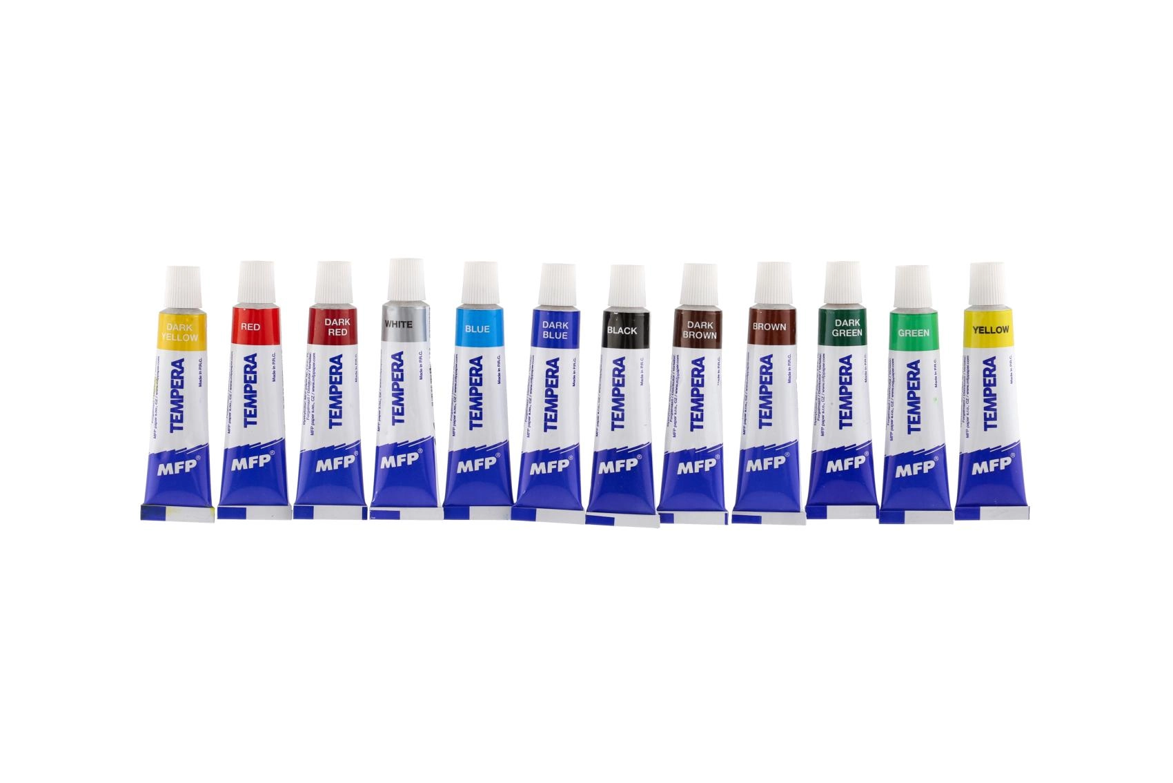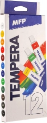 MFP temperų rinkinys patogiuose aliumininėse tūbelėse siūlo 12 sodrių atspalvių mokykliniams darbams ir namų hobiui. Dažai pasižymi didele dengiamąja geba, yra be toksiškų medžiagų ir puikiai tinka tapybai teptuku ir pirštais. Idealu popieriui ir kartonui, lengvai maišosi ir suteikia ryškius, išraiškingus rezultatus.