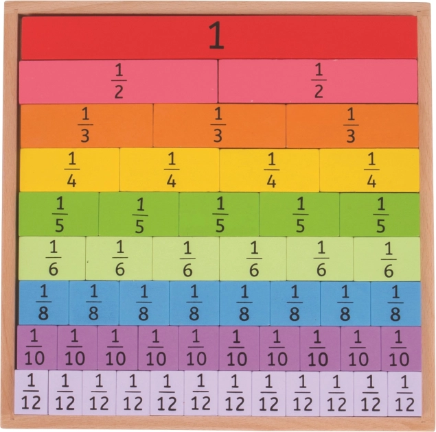 Linksma ir edukacinė priemonė mažiesiems matematikams, padedanti vaikams suprasti trupmenas ir jų tarpusavio ryšius. Dėka spalvotų dalių lengvai įsisavinami pagrindiniai matematiniai konceptai.