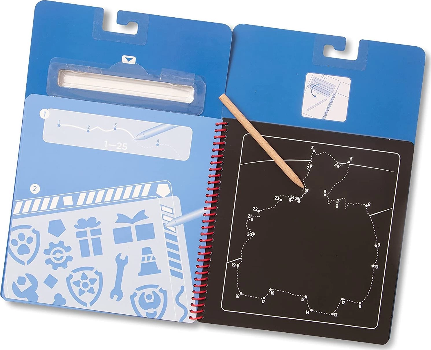 Po juodu sluoksniu slepiasi ryškūs PAW PATROL motyvai. Vaikai lengvai sukurs patrauklius piešinius be dažų ar klijų.