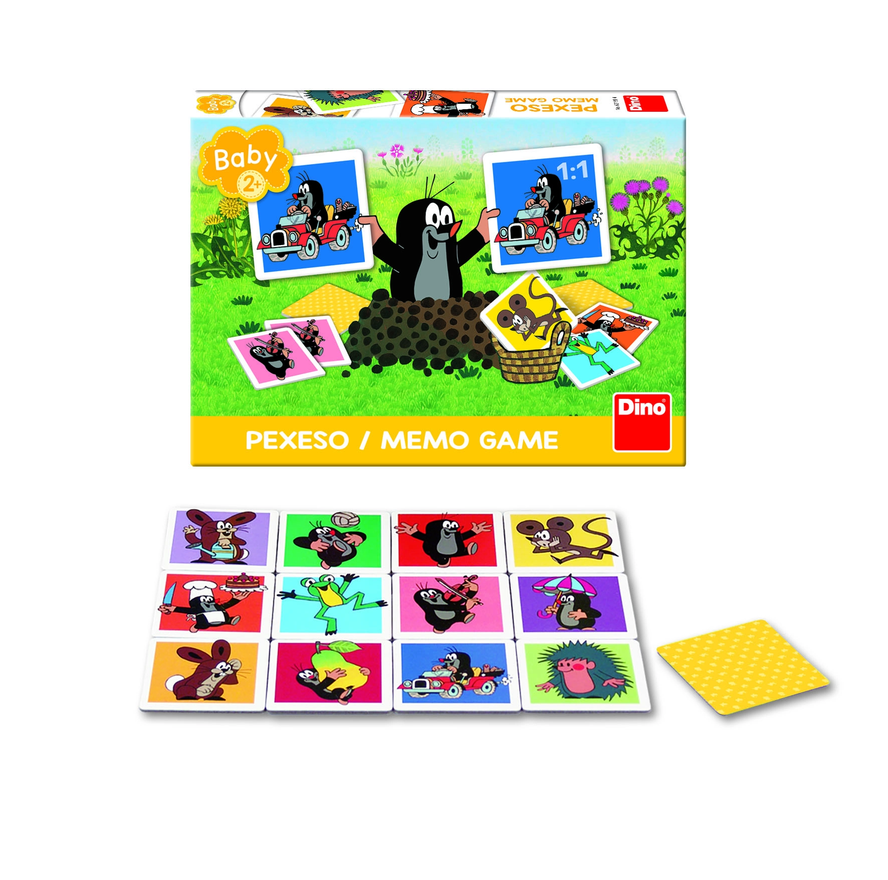 Atraskite klasikinio Pexeso žaidimo žavesį su mėgstamu Kurmiuku iš Dino. Šis smagus ir ugdomasis žaidimas skirtas vaikams nuo 2 metų ir idealiai tinka atminties gebėjimams lavinti. Kiekviename rinkinyje yra 24 kortelės su 12 skirtingų porų, kurios skatina mokymąsi ir atpažinimą.